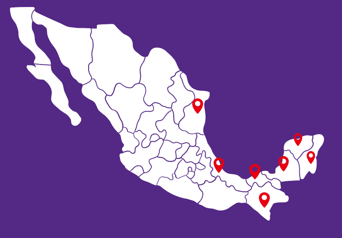 Actualmente tenemos presencia en al menos siete estados de la República Mexicana, entre ellos Yucatán, Campeche, Quintana Roo, Tabasco, Tamaulipas, Chiapas y Veracruz.